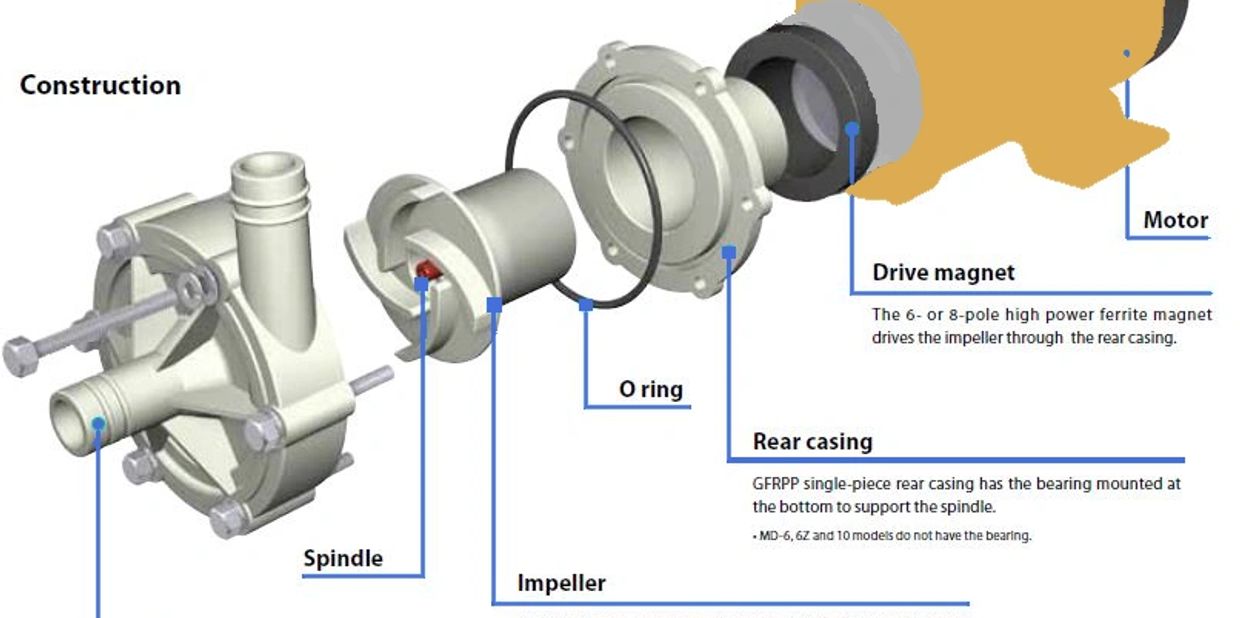 Due to the small number of parts, the HETHON magnetic pump is very easy to maintain.